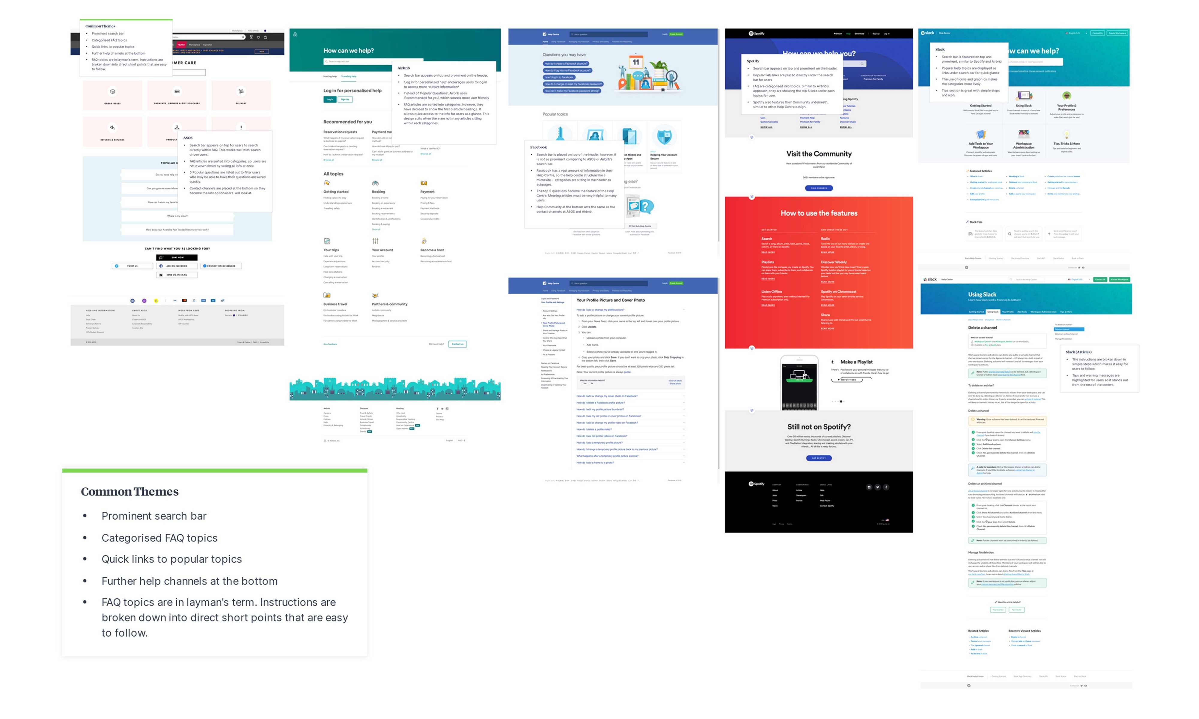 I started with a UX mood board to look at some help centres of the world’s most user-centric, visually powered companies.